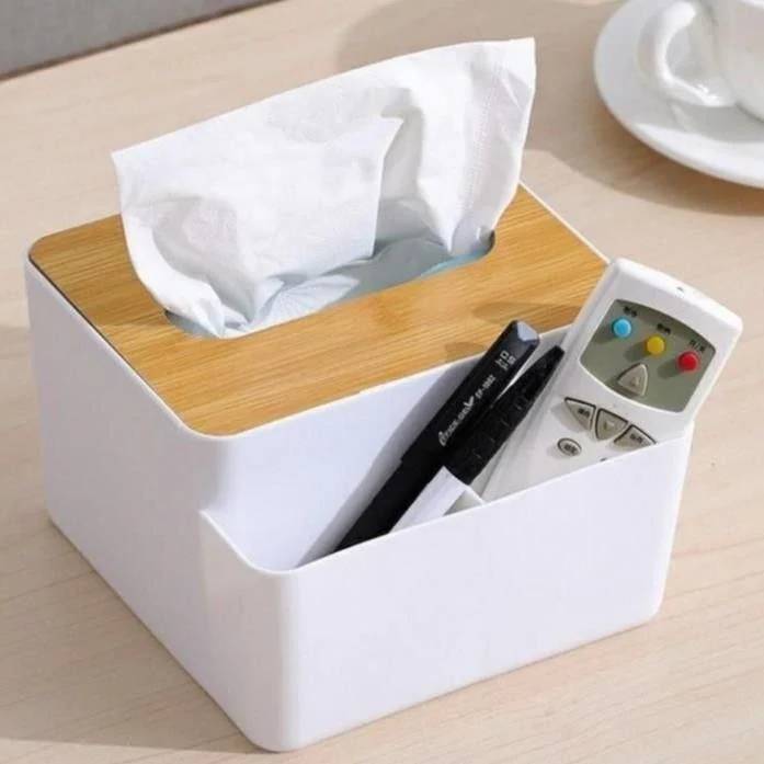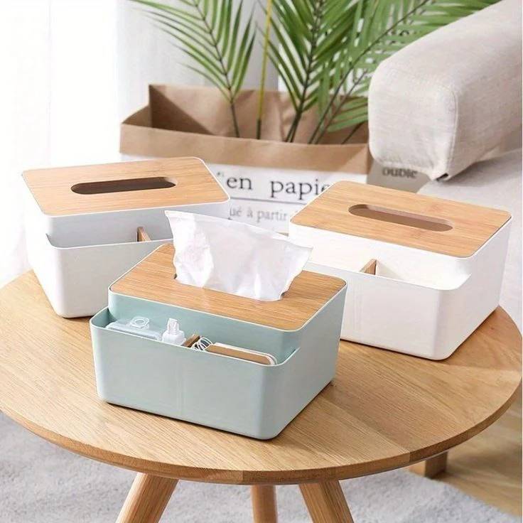 توضیحات وزن خالص: 500 گرم موجودی چک شود ❌ ارگانایزر رومیزی و جعبه دستمال کاغذی چوبی قابل شست و شو جنس:پلاستیک جنس درب:چوب